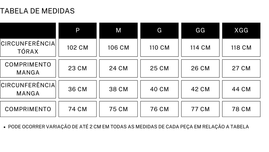 Possui mangas curtas, pequenas fendas laterais que proporcionam mais movimento e conforto, não possui bolso e conta com botões de madrepérola, que elevam o acabamento da peça.
